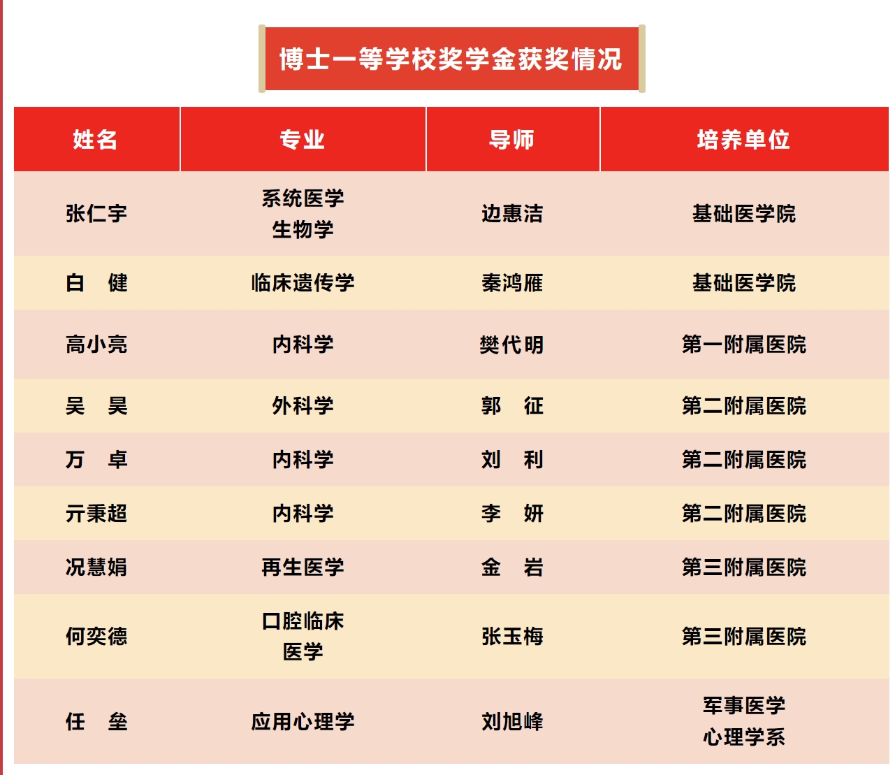 近日,beat365中文官方网站确定了2022年学校奖学金入选者名单,按照“公开、公平、公正、择优”的原则,经个人申请、研究生大队初审、各培养单位推荐、研究生院审核、网上公示、校首长审批的程序,21名博士研究生、26名硕士研究生在全校研究生学员中脱颖而出,成功上榜!