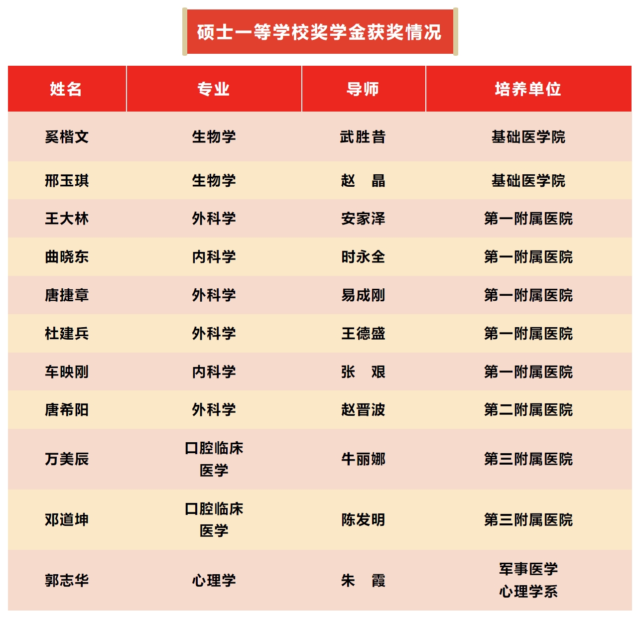 奚楷文等11名硕士研究生获评硕士一等学校奖学金,奖励标准为每人1万元;