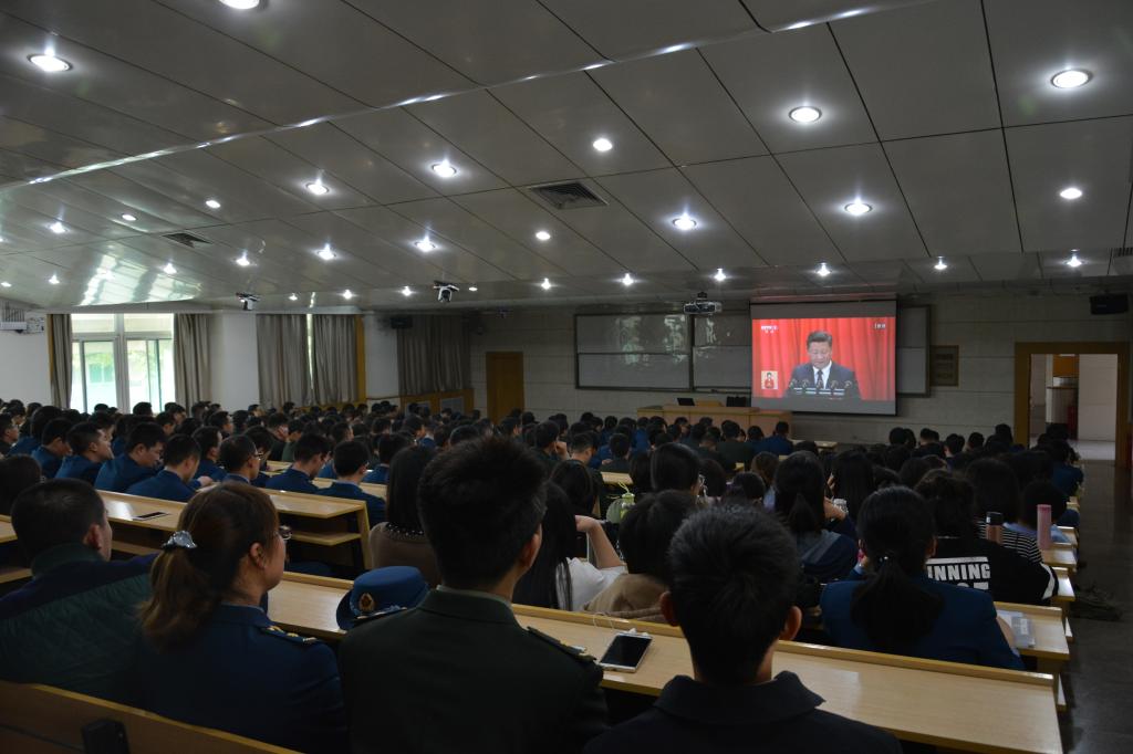 10月18日上午,研究生管理大队组织观看十九大开幕盛况直播,学校“双三”机制蹲点干部和大队全体干部参加,认真观看了习近平同志代表十八届中央委员会所作的报告。对上课、值班等未及时收看大会的新生,大队于10月20日利用党团活动时间进行了补课。