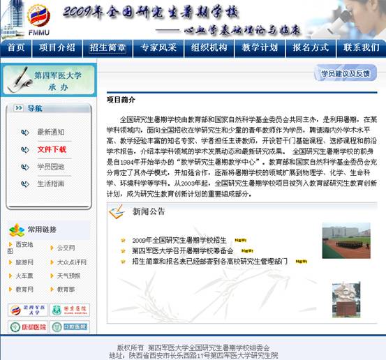招生简章和教学计划等详情见暑期学校官方网站:http://summerschool.fmmu.edu.cn/。