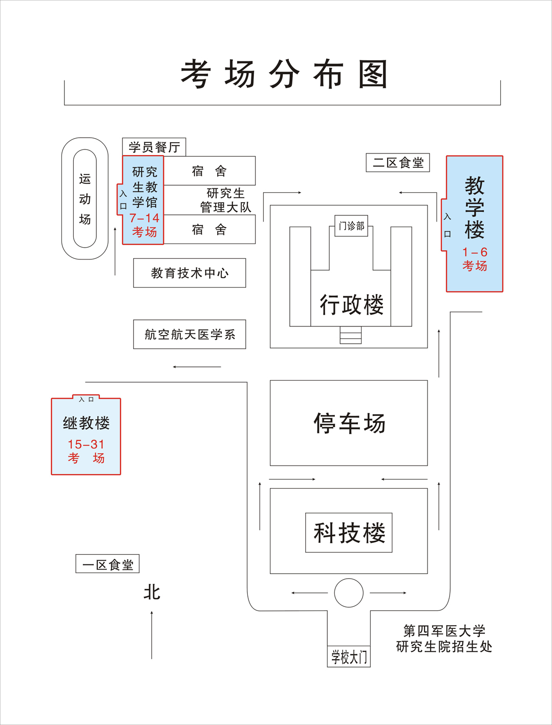 2.提前了解考场位置。考生如对考场所在地以及交通情况不熟悉,请提前一天到实地了解情况或查看考场分布图(附图);如需查详情,请于26日下午17时后到各考区门口看通知安排,考试期间,校外车辆一律不得进入学校。